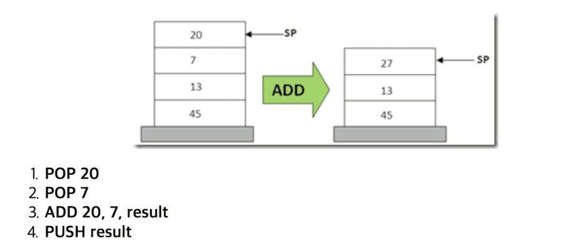 스택 기반의 가상 머신은 연산의 결과값을 스택에 바로 바로 저장하는 형태이다.